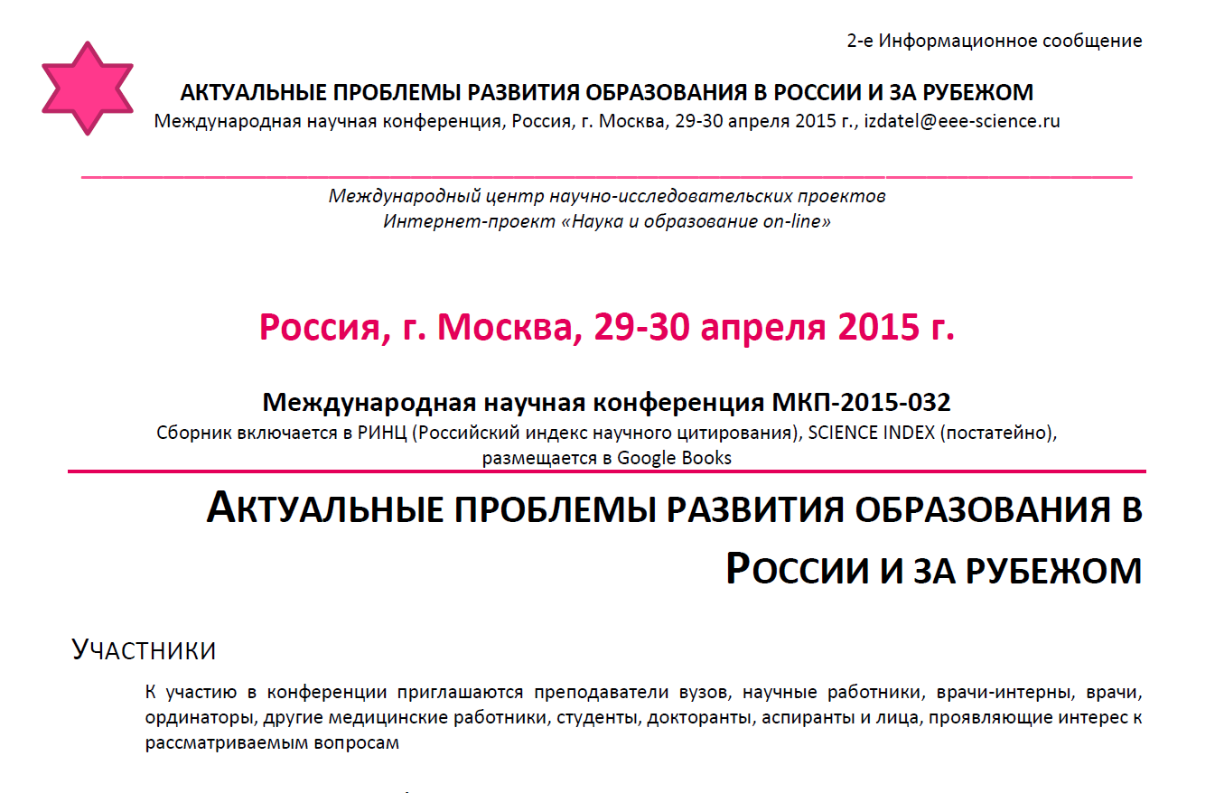 Ирина Александровна Мурзинова опубликована новая запись Международная конференция по проблемам развития образования на сайте ifl.vspu.ru 10 лет, 12 месяцев назад